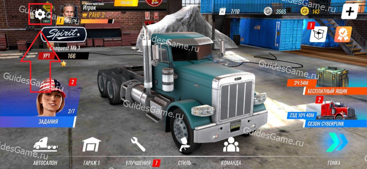 1. Нажмите на шестеренку настроек в левом верхнем углу экрана.