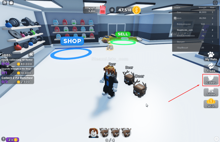 Запустите игру и нажмите кнопку «Коды» (Codes) в правой части экрана. Введите код в текстовое поле и нажмите кнопку «Погасить» (Redeem).